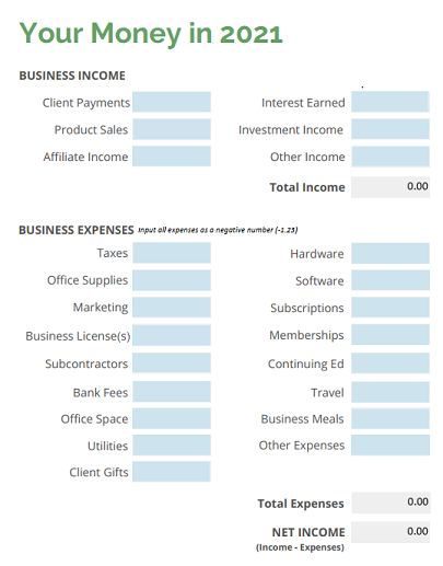 PLUS you'll get the 2022 Income vs. Expenses workbook to keep track of your money all year. (Provided as a link to Google Sheets template.)